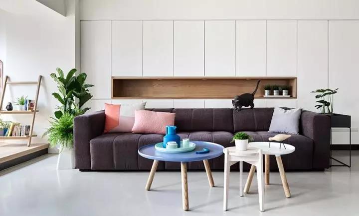 呼应白色简约北欧风空间配置,屋主挑选的家具特色也呈现线条简单、色系则为轻柔缤纷的彩度,以好看又舒适为重点,只有客厅选择灰紫色订制款沙发,成为视觉重要主角。